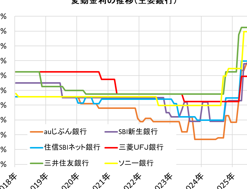 - 変動金利: 市場金利の動向に応じて、随時金利が変わります。経済状況により、金利が上下することがあります。