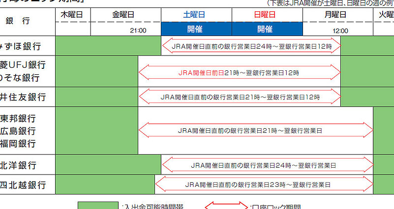 - 祝日:全ての銀行で休業