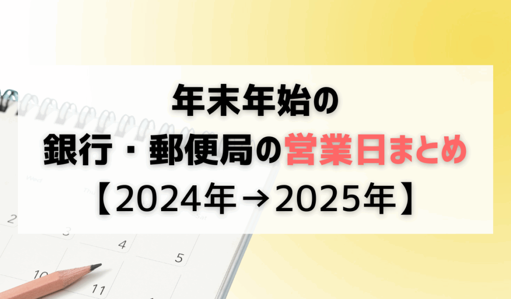 - 年末年始の休業: ほとんどの銀行は12月31日から1月3日まで休業。