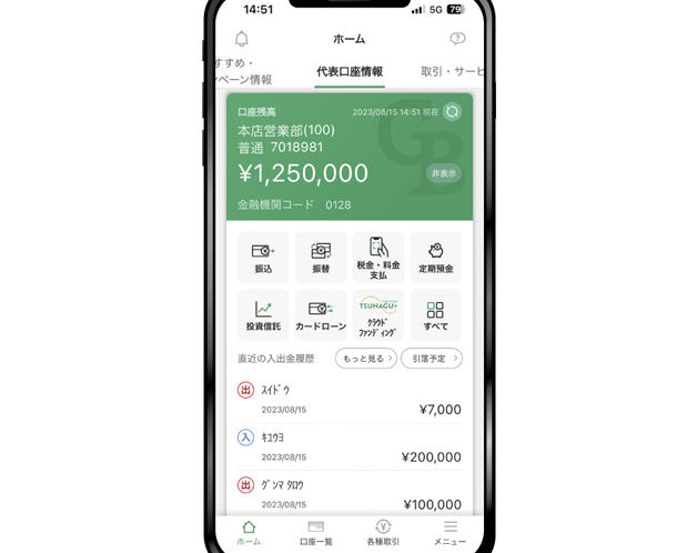 - 預金業務: 預金口座の開設や入金、出金ができます。