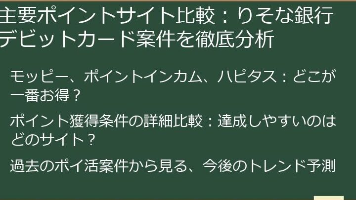 りそな銀行の「どこ得」は、他の銀行の特典サービスと比較しても際立つ魅力があります。例えば、他の銀行ではポイント付与の条件が厳しいことがありますが、私たちのサービスでは加盟店も多く、幅広い選択肢が利用可能です。