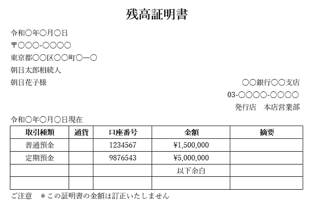 銀行口座証明書の注意点