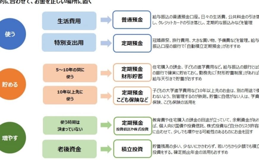 - 貯蓄: 貯蓄専用口座で将来の計画や緊急用の資金を準備します。