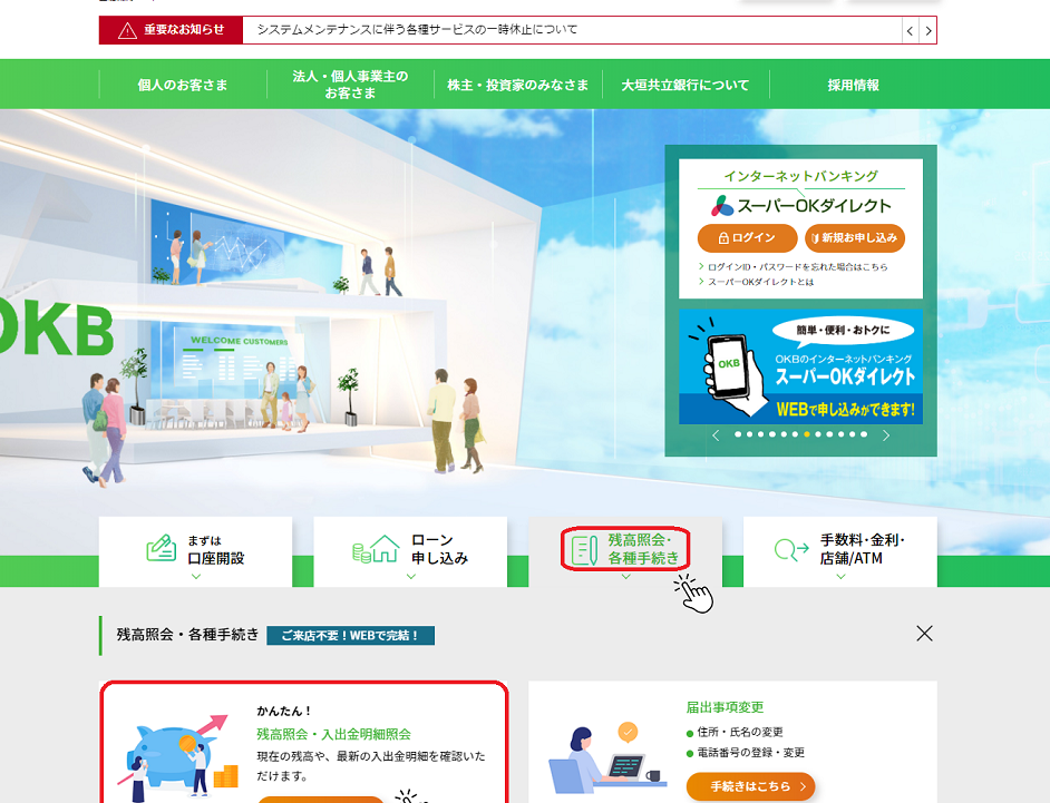 - 銀行の公式ウェブサイトまたはアプリにアクセスします。