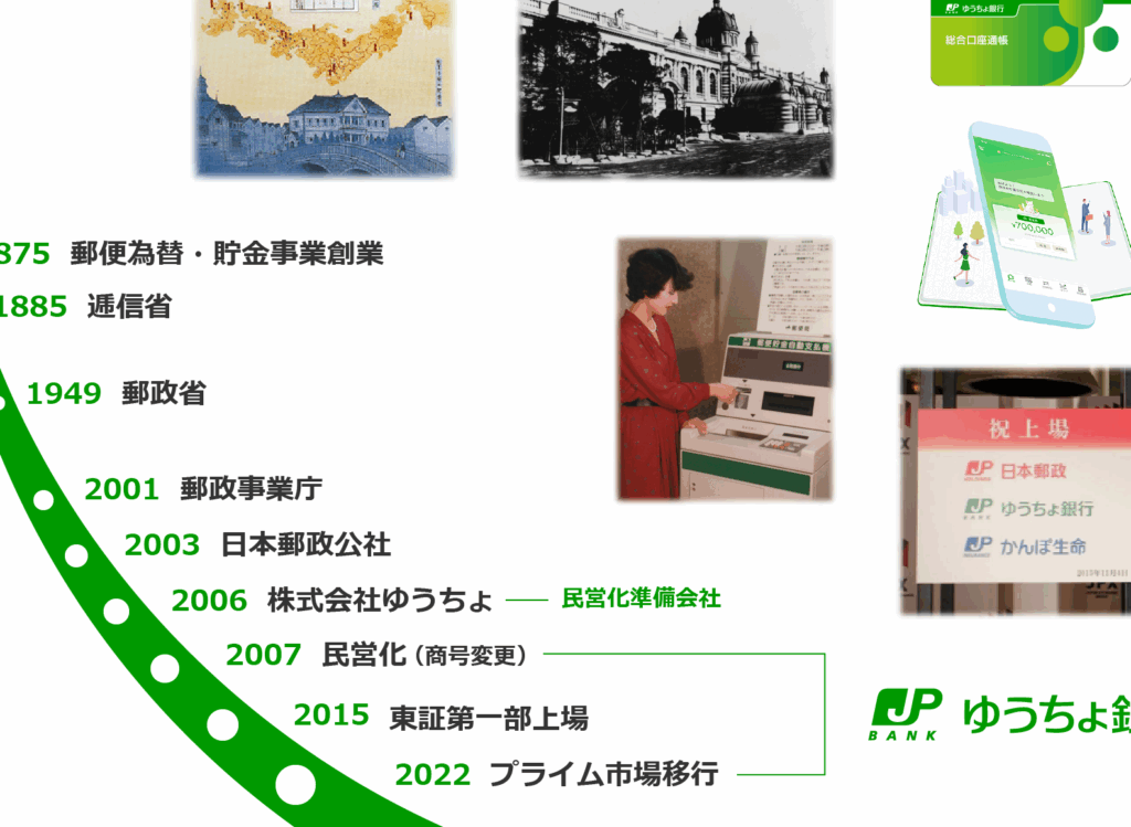 ゆうちょ銀行は2006年に設立されました。それ以前は、日本郵政公社の一部として運営されていました。民営化によって、より競争力を持つ金融機関へと成長し、多様なサービスを展開できるようになりました。現在では、全国各地に支店を持ち、多くの顧客から信頼されています。