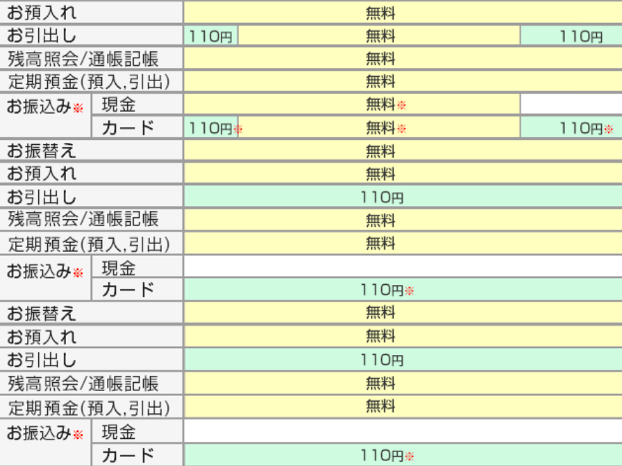 | 銀行名 | 平日 | 土曜日 | 日曜日 |