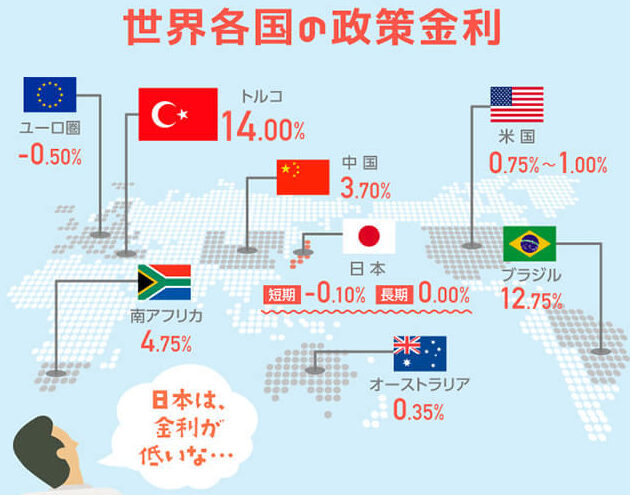 最近、日本国内でも低金利環境は続いており、多くの場合で0%近辺で推移しています。この背景には次のような理由があります:
