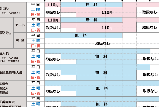 | 銀行名 | 平日受付時間 | 土曜日受付 | 日曜日・祝日 |