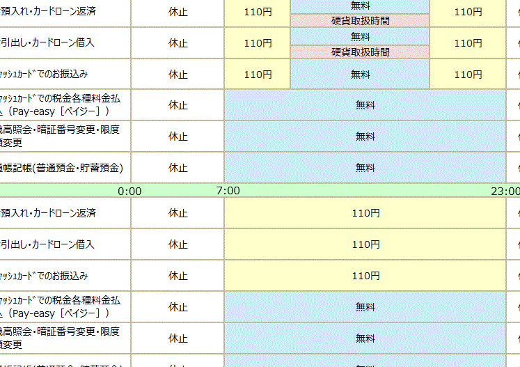 - 地方: 一部のATMは月曜日から土曜日までのみ営業しており、日曜日や祝日は休業する場合もあります。