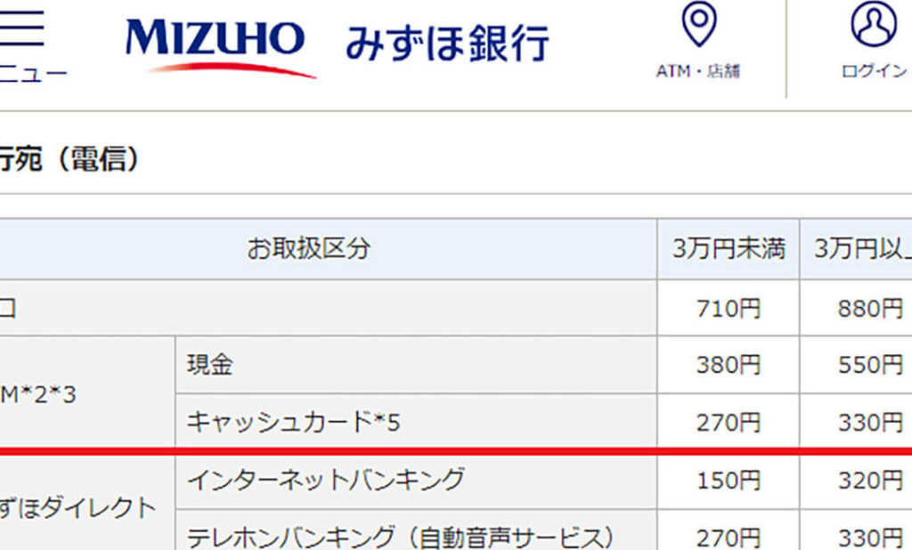 | みずほ銀行 | 無料 | 330円 | 220円 | ||