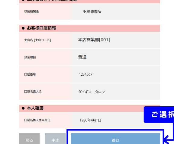 オンラインバンキングでの口座番号確認