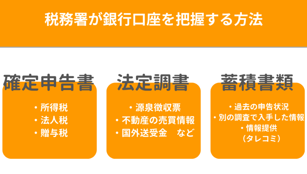 税務署から銀行口座について情報提供が求められる主な状況としては次のものがあります: