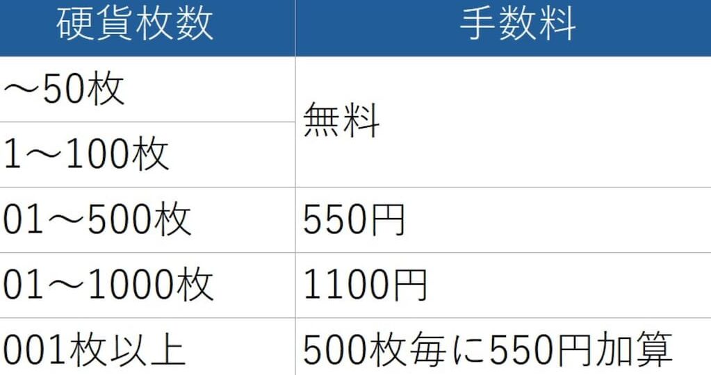 - 窓口でのお手続き: 窓口にて、自分が預けたい硬貨の枚数を伝えます。この時、100枚以内であれば手数料は発生しませんので安心してください。
