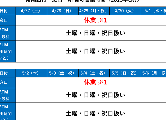 この表からもわかるように、一部の店舗では特定の日やイベントによって営業時間が変更されることがありますので、その点にも十分注意しましょう。また、各店舗ごとの特徴やニーズを把握することで、より効率的にATMサービスを活用できるでしょう。