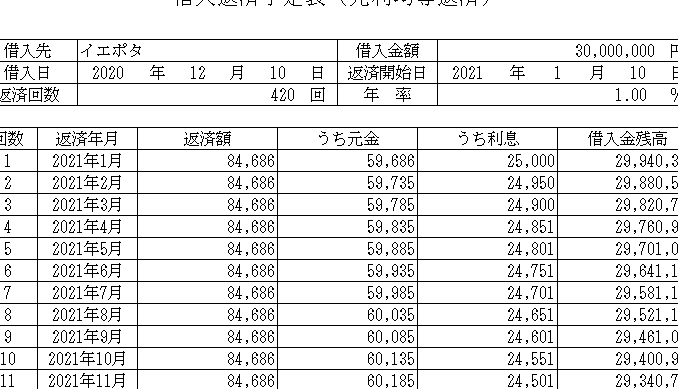 - 返済予定表のリンクをクリックすると、最新の情報が表示されます。