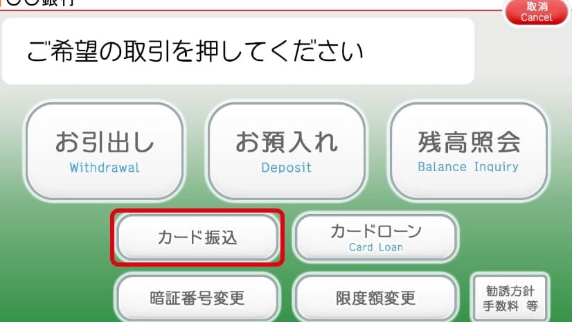 - 振込メニュー選択: メインメニューから「振込」または「送金」を選択します。