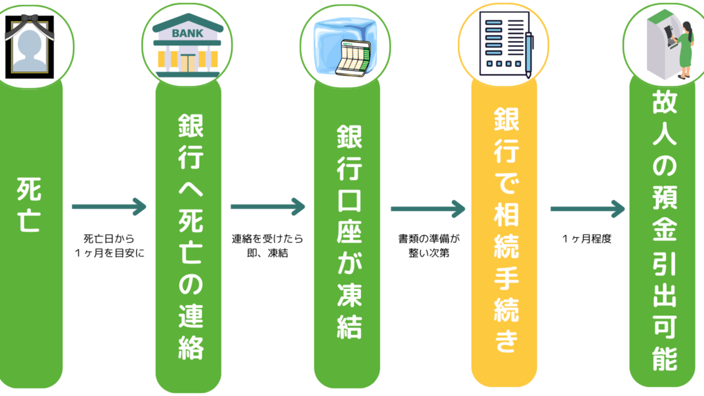 - 相続手続きの開始: 銀行は故人の財産を保護するために、自動的に口座を凍結します。