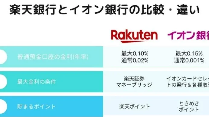 | 項目 | イオン銀行 | 楽天銀行 |
