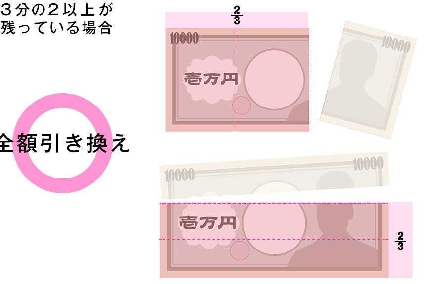 - お札全体の50%以上が残っていること