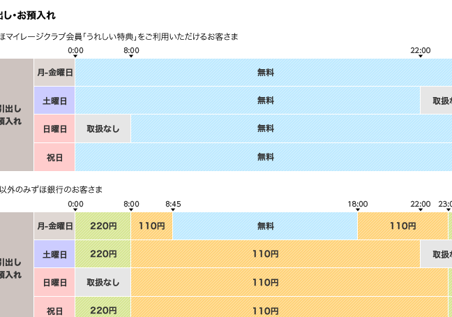 | 曜日 | 振込可能時間 | 備考 |