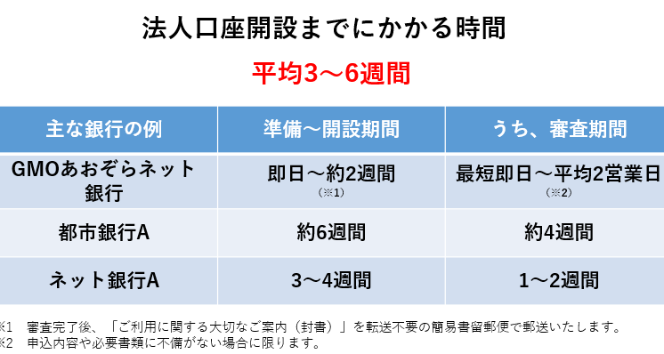 - 申請方法: オンライン申請の場合、多くの場合迅速ですが、一部金融機関では対面での申請しか受け付けないところもあります。その際には追加の日数が見込まれます。
