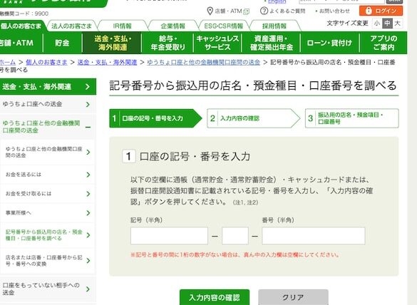 - ゆうちょ銀行の公式ウェブサイトへアクセス。