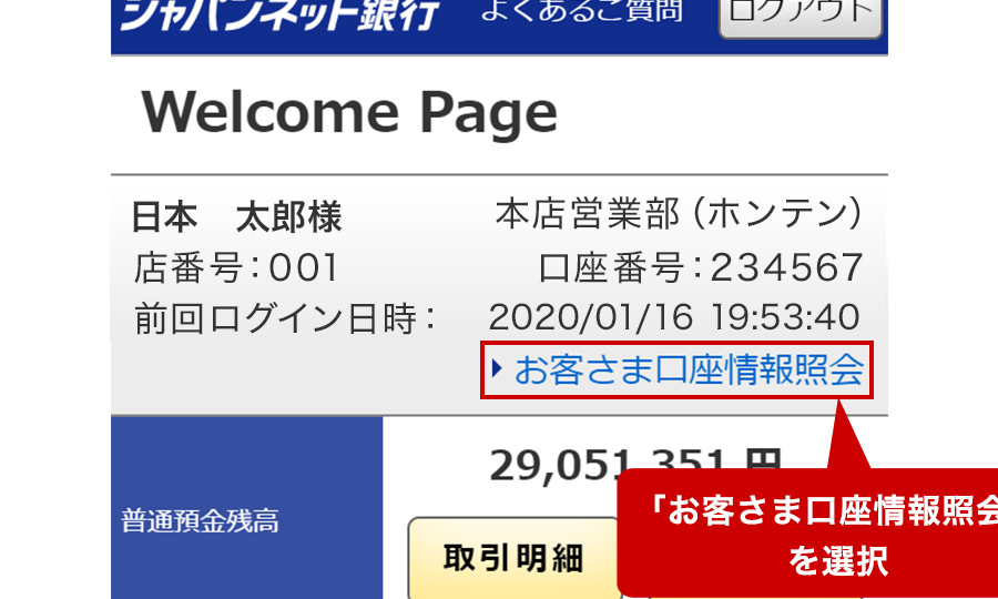 - メニューから選択: ホーム画面から「設定」や「口座情報」にアクセスし、必要な情報を見ることができます。