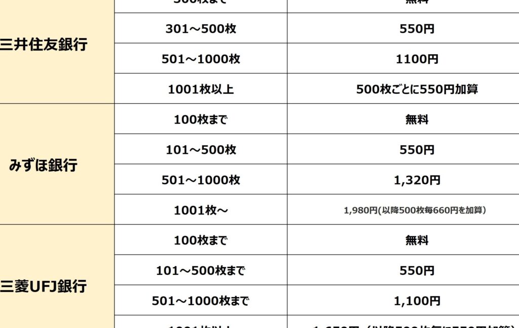 - 対象となる取引:主に現金の預け入れ時に適用され、一部の金融機関では特定の条件下で無料になる場合もあります。