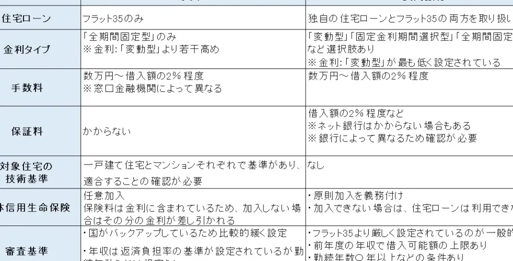 - 借入対象物件限定: 購入可能な物件は新築住宅や一定基準を満たす中古住宅に限られることがあります。
