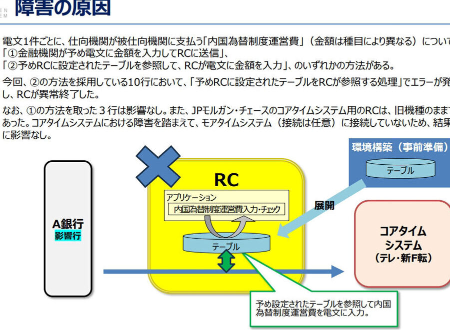以下は、本日発生した銀行システム障害の詳細です: