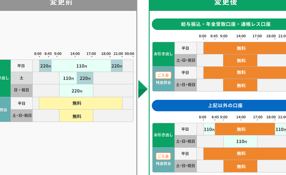 | A銀行 | 330円〜660円 | 220円〜440円 |