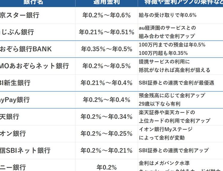 - キャンペーン情報:期間限定で提供される高い金利やボーナスキャンペーンがある場合もあります。