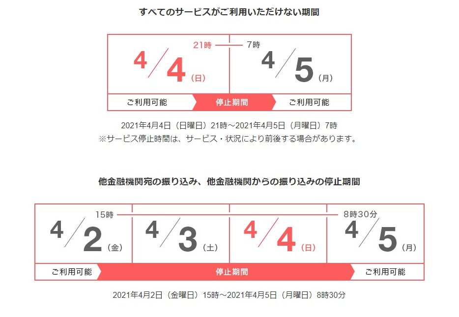 最新のPaypay銀行メンテナンス情報