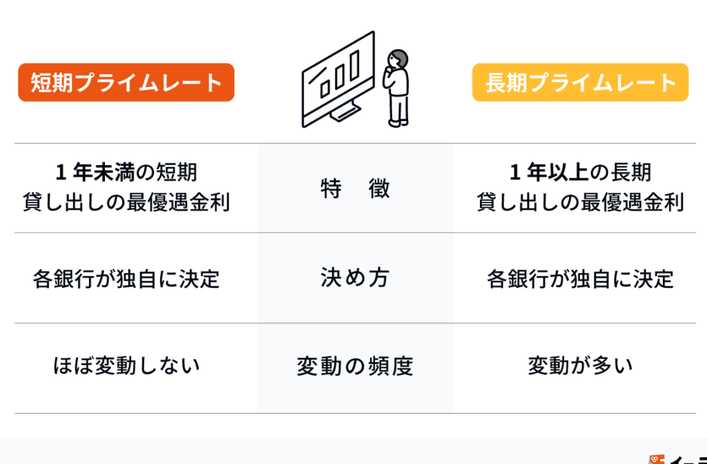 一般的に考えると、短期プライムレートは以下のような金利と比較されます: