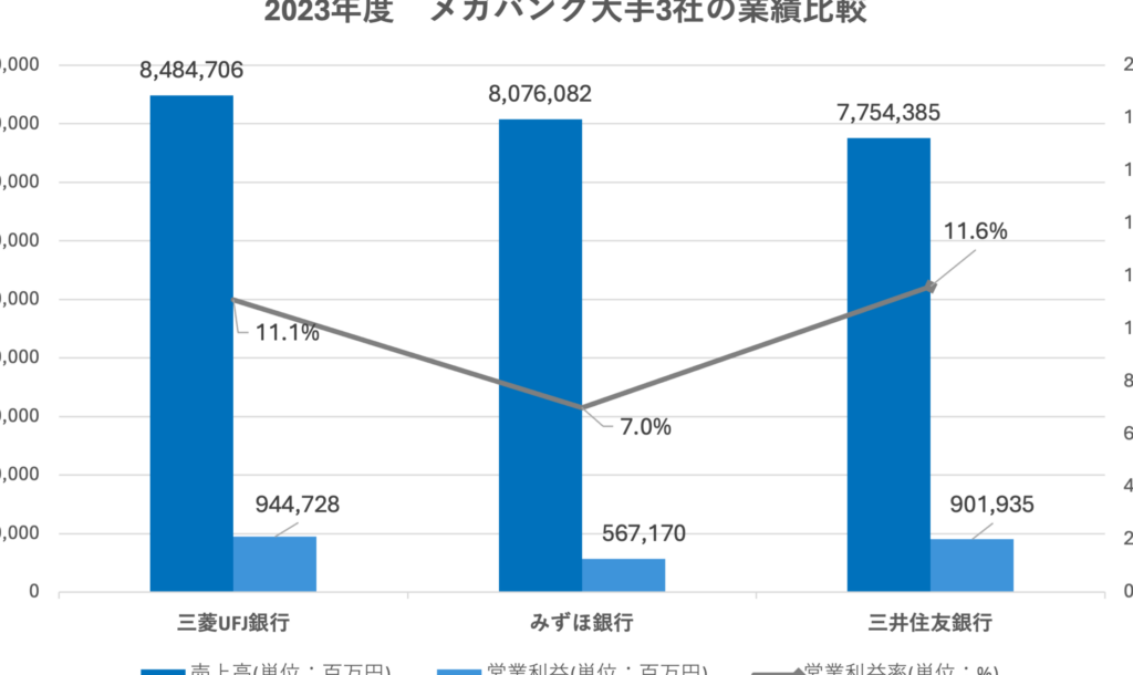 このデータからわかるように、三井住友銀行は特にサービス品質と総合的な顧客満足度で高評価を得ています。一方で、みずほ銀行も一定の評価は得ているものの、一部の面では競争力が劣っていることが示されています。このような情報は、自分たちの求める基準に照らし合わせて判断材料として利用できます。