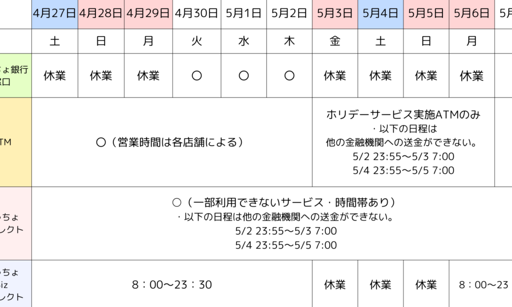 このような情報を知っておくことで、週末のお金引き出しなどもスムーズに行えます。