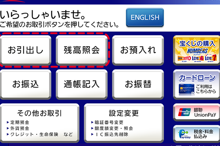 ATMでの手続き
